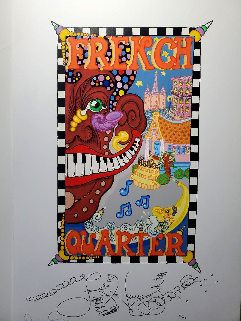 This serigraph was produced the traditional way using a hand cut screen for each color. 50 screens were used for each piece and the run took over a month to complete. A hand-pulled serigraph produced in this method is considered an original artwork. It measures 13 x 20 inches.