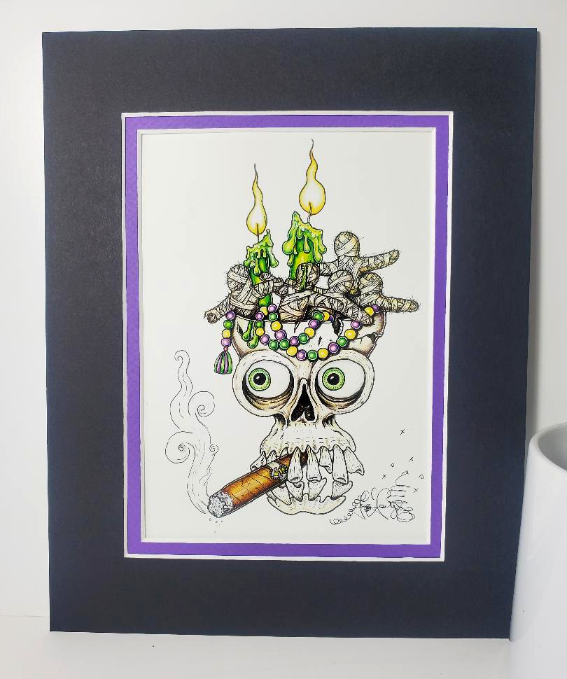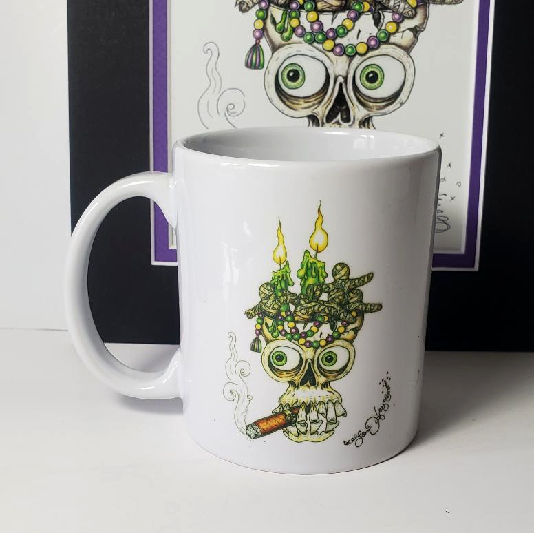 This Cigar Smoking Skull print is signed and matted to fit an 8 x 10 frame. The matching mug is printed on both sides and is dishwasher & microwave safe