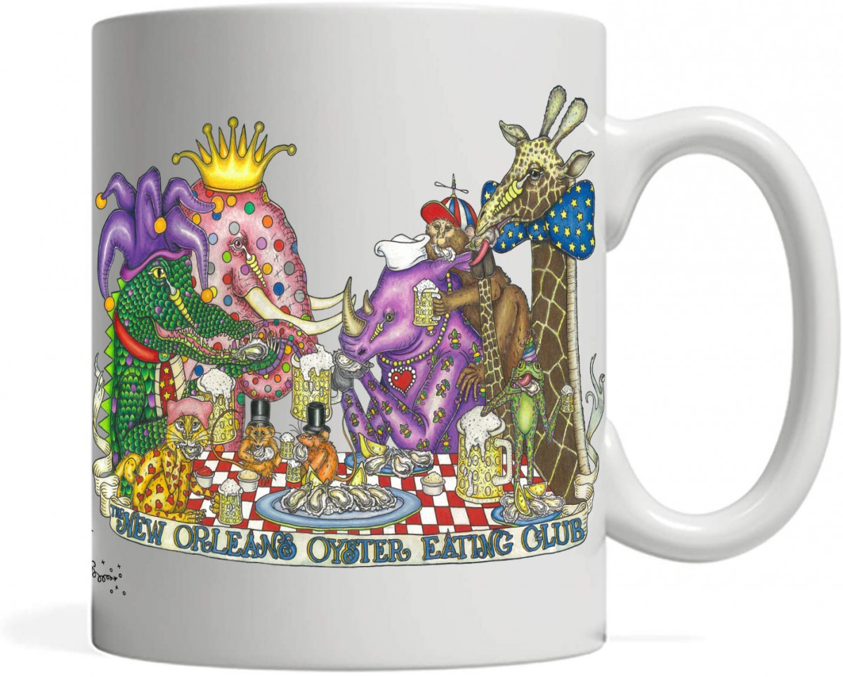 This New Orleans Oyster Eating Club print is signed and matted to fit an 8 x 10 frame. The matching mug is printed on both sides. Also included is a super cute gift box for the mug.