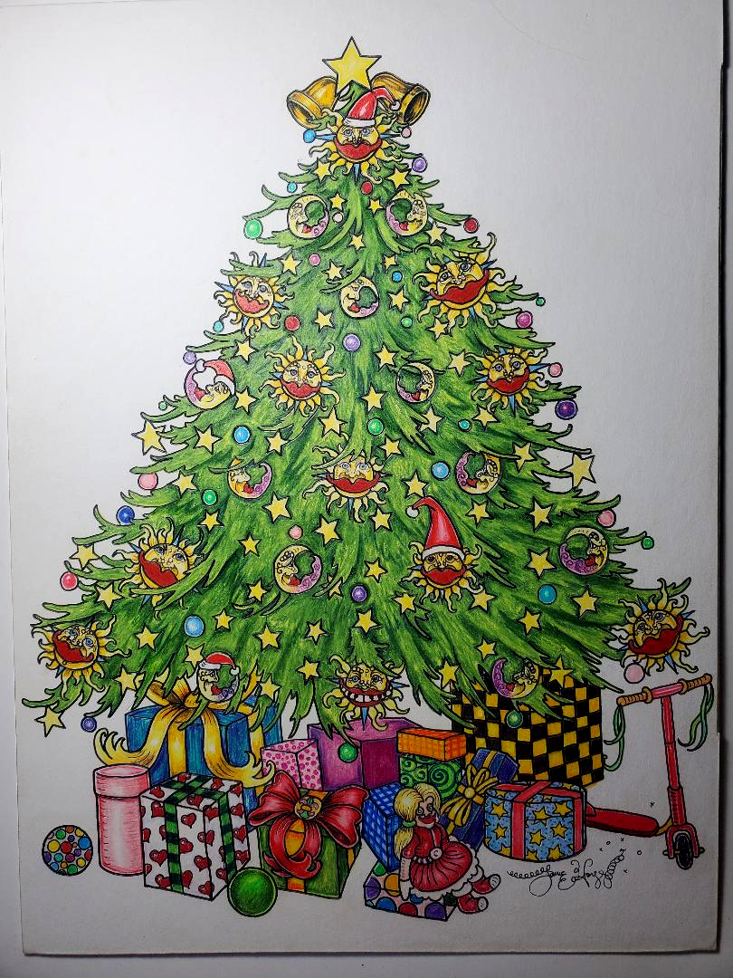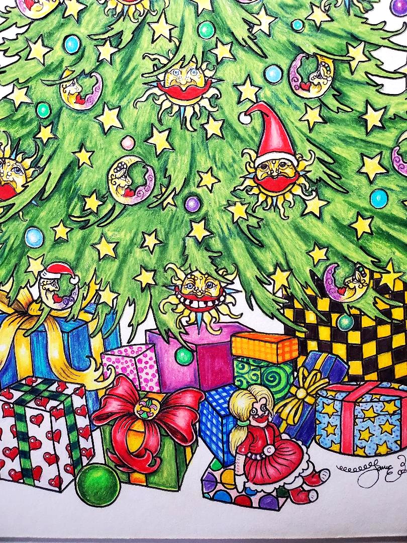 Most of Jamie`s originals are color pencil drawings. He likes the detail he is able to get and as a result they reproduce better than an oil painting. Jamie was originally a scrimshaw artist (engraving on bone) and he always referred to these color pencil drawings as large engravings. This Christmas Tree is only one of 2 Holiday themed drawings by Jamie. It measures 11.5 x 15.5 in.