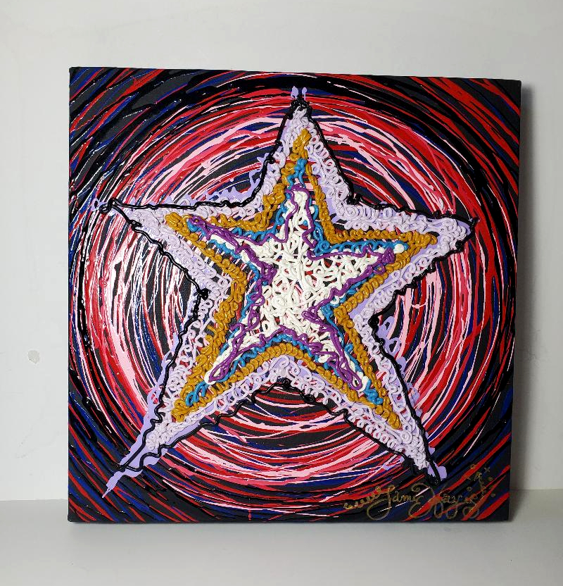 Be the first to review “Original Oil, Squirt Technique, Star, 13 in. square, signed”