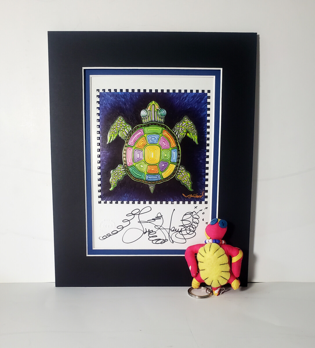 This signed and embossed turtle print is double matted to fit a standard 8 x 10 frame. Included is a FREE stuffed turtle keychain
